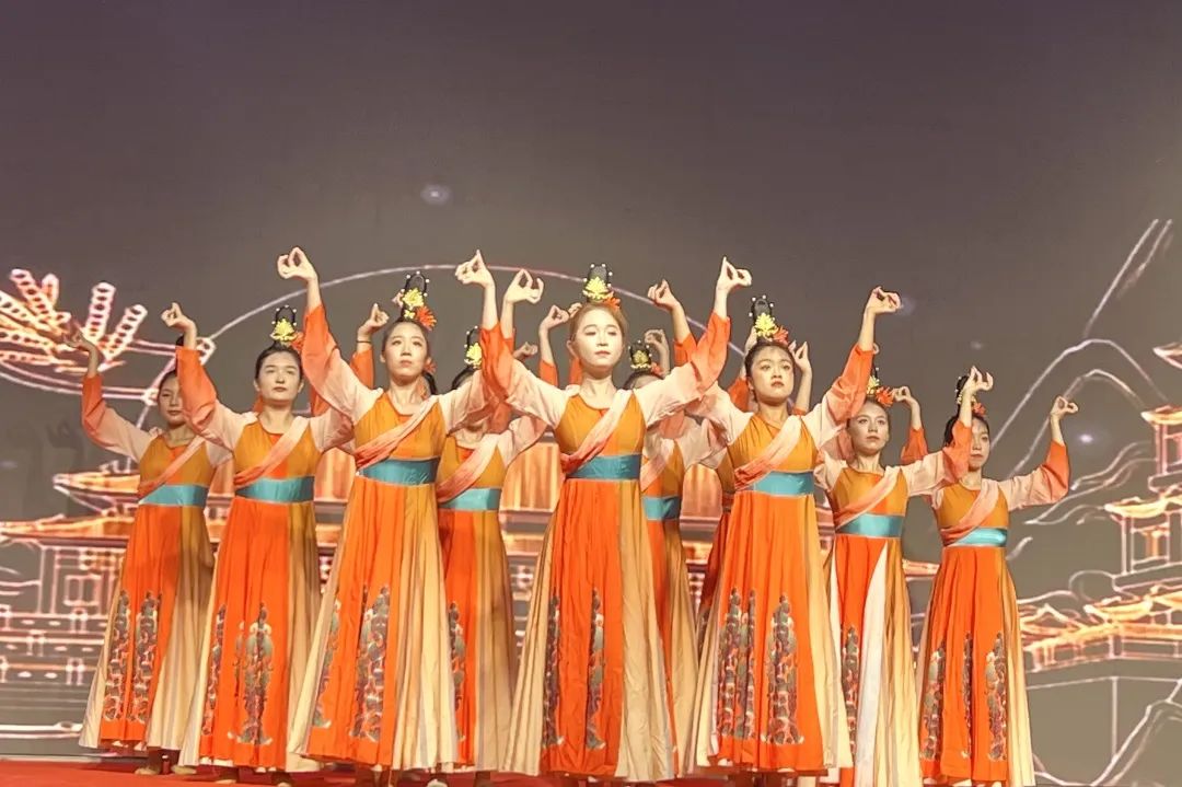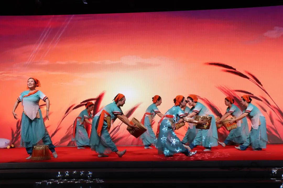 文化站舞蹈《希望的田野》,既有快速的轉(zhuǎn)身和跳躍,也有緩慢的舞蹈動作,舞者們在舞臺上輕盈地轉(zhuǎn)身、彎腰、揮動扇子,配合著優(yōu)美的音樂,形成了一幅美麗的畫面。