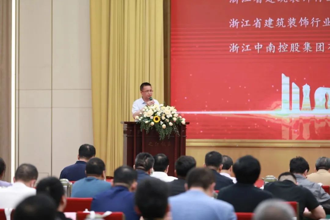 浙江省建筑裝飾行業(yè)協(xié)會(huì)高級(jí)顧問(wèn)、建筑幕墻分會(huì)會(huì)長(zhǎng)吳建榮出席會(huì)議并講話。