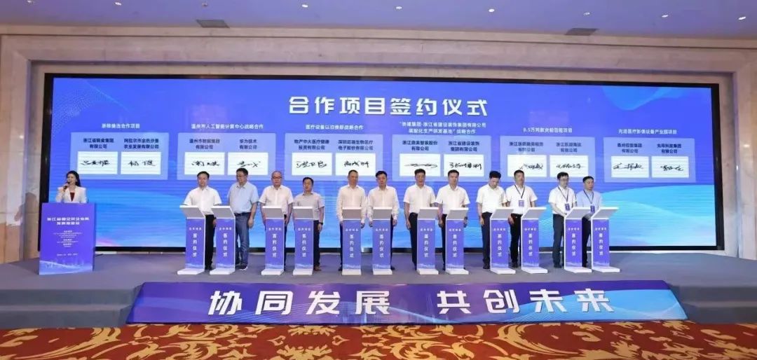 會(huì)上,12個(gè)國(guó)企民企合作項(xiàng)目簽約,涉及項(xiàng)目金額128億元,其中浙江省建設(shè)裝飾集團(tuán)有限公司與浙江鼎美智裝股份有限公司簽署戰(zhàn)略合作。